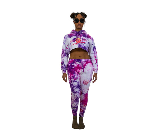 ADDICTED TO SOCIAL MEDIA CROPPED TIE DYE (PURPLE) HOODIE